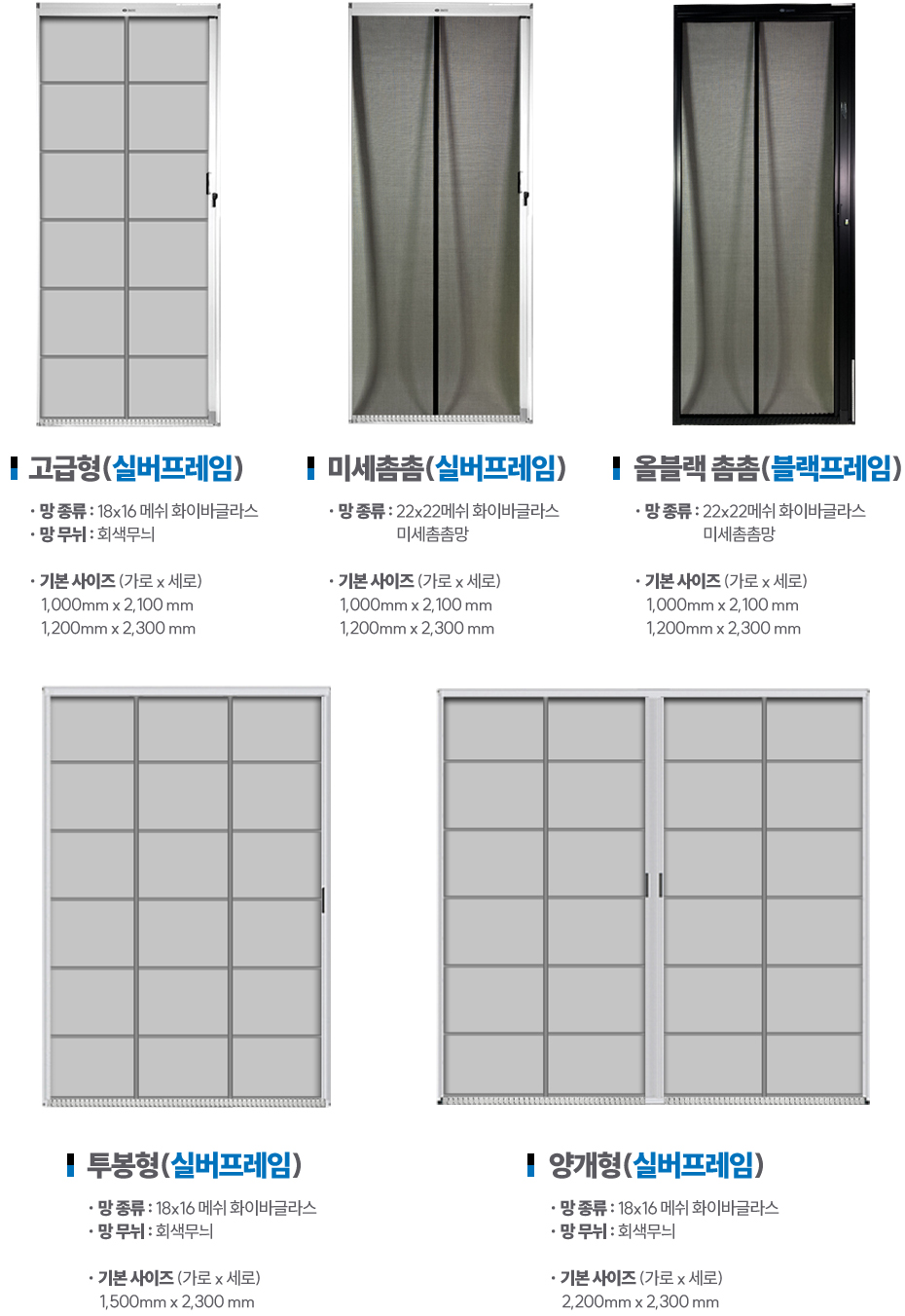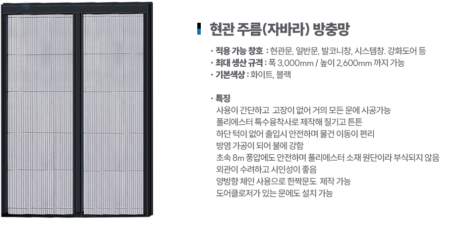 기존 18 x 16 메쉬에 비해 22 x 22 메쉬의 블랙색상을 적용한 제품으로 미세벌레까지도 차단하는 고급제품
